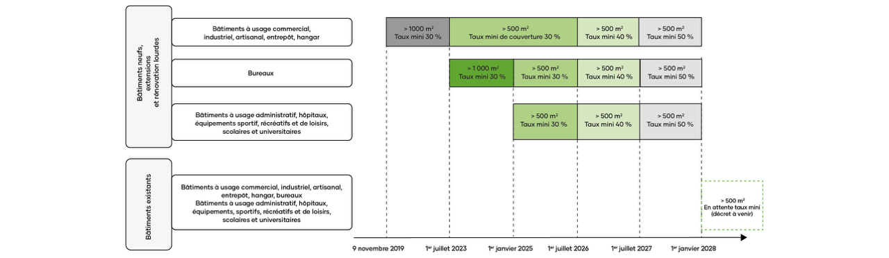 Les bâtiments neufs livrés actuellement seront également soumis à cette obligation à partir du 1er janvier 2028.