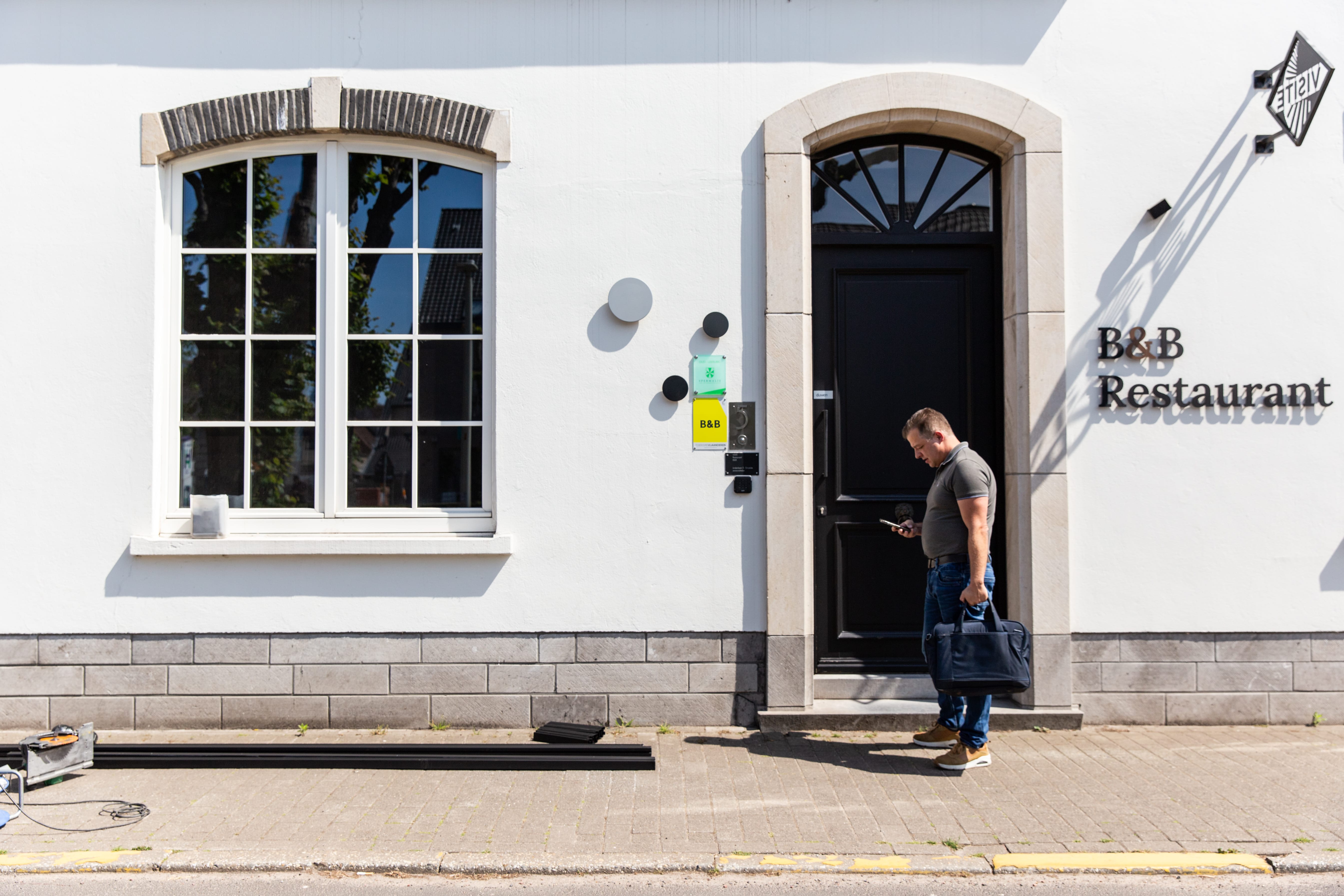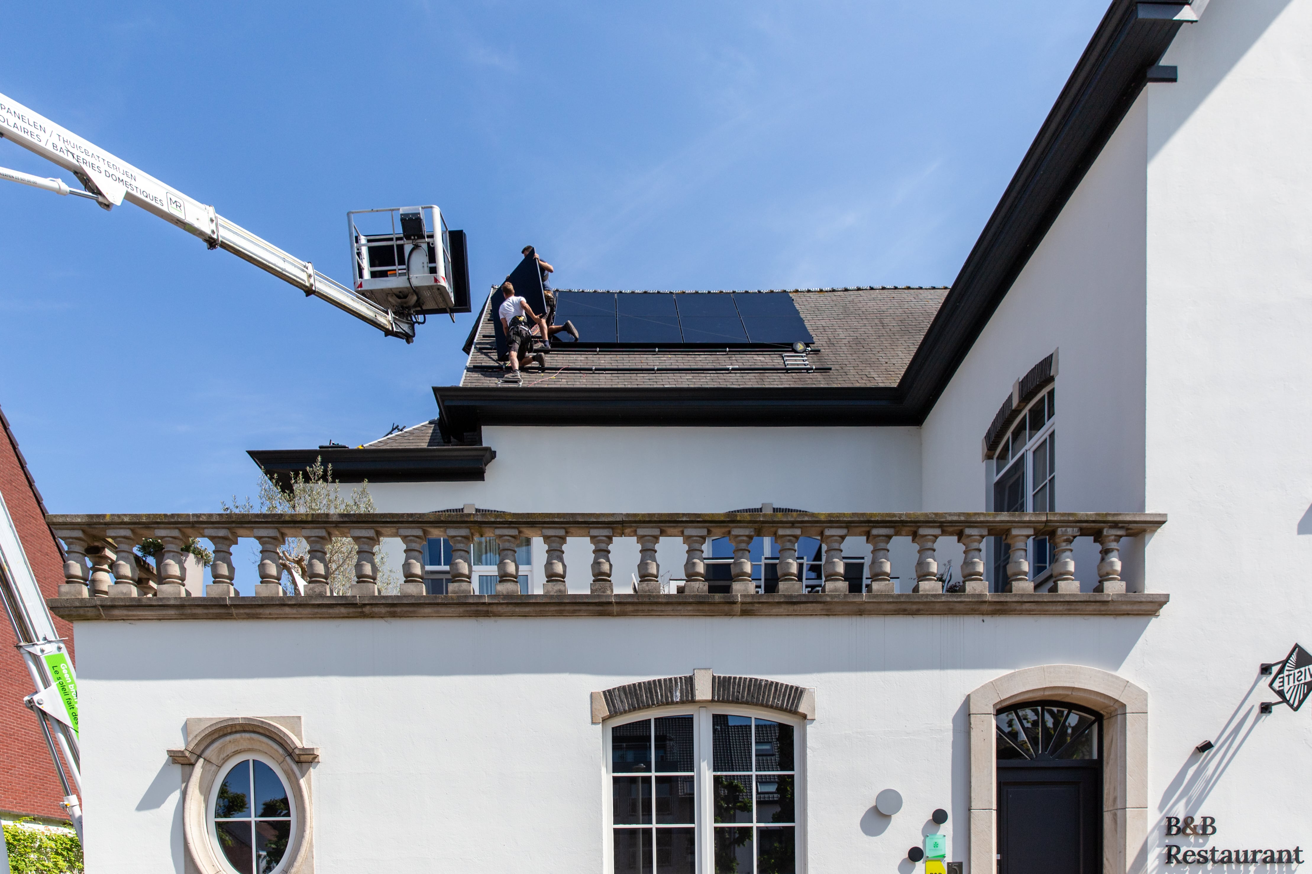 De professionele keuken en de verwarmde zwemvijver in de tuin drijven de energierekening van Visite de hoogte in. Duurzame energie was dan ook geen luxe voor Annick en Marc, maar een logische stap. Eén belangrijk detail: het mocht de sfeer van de B&B niet verstoren. Geen panelen op de grond dus.