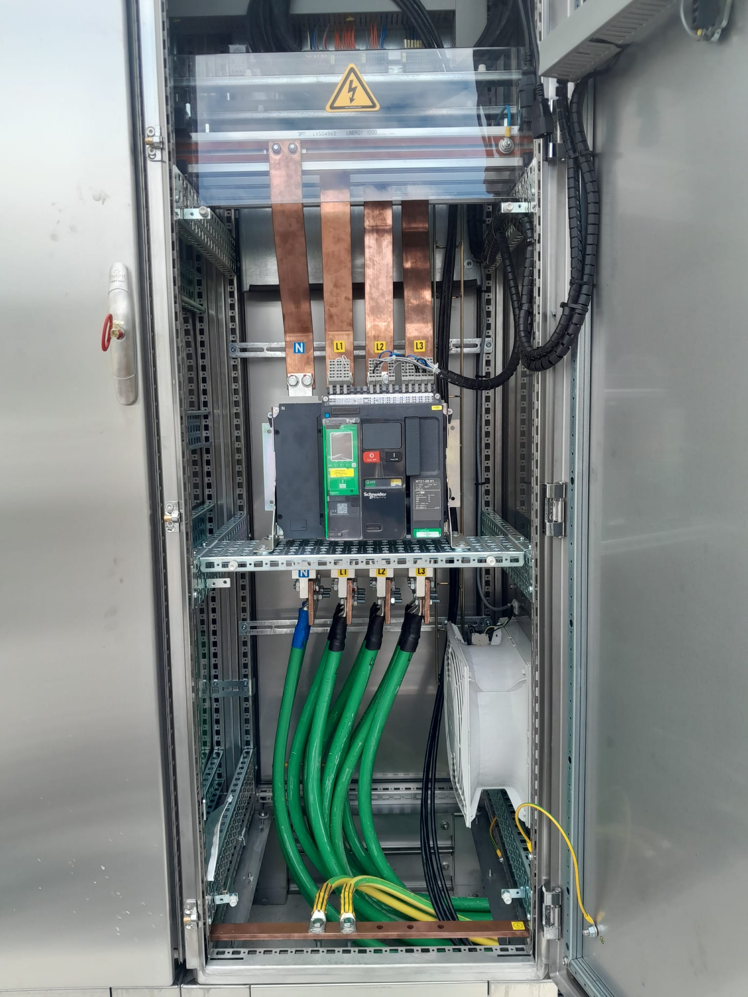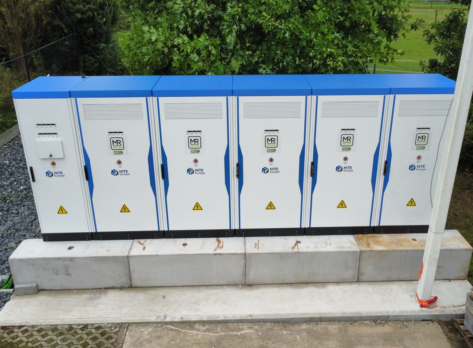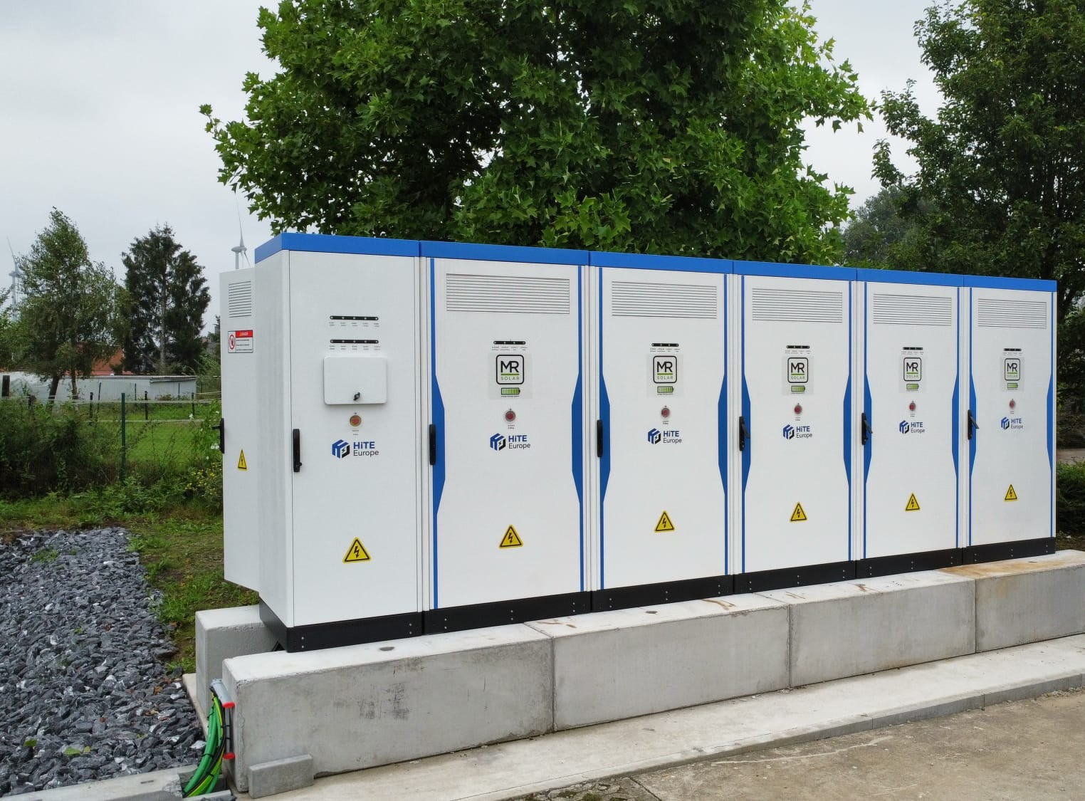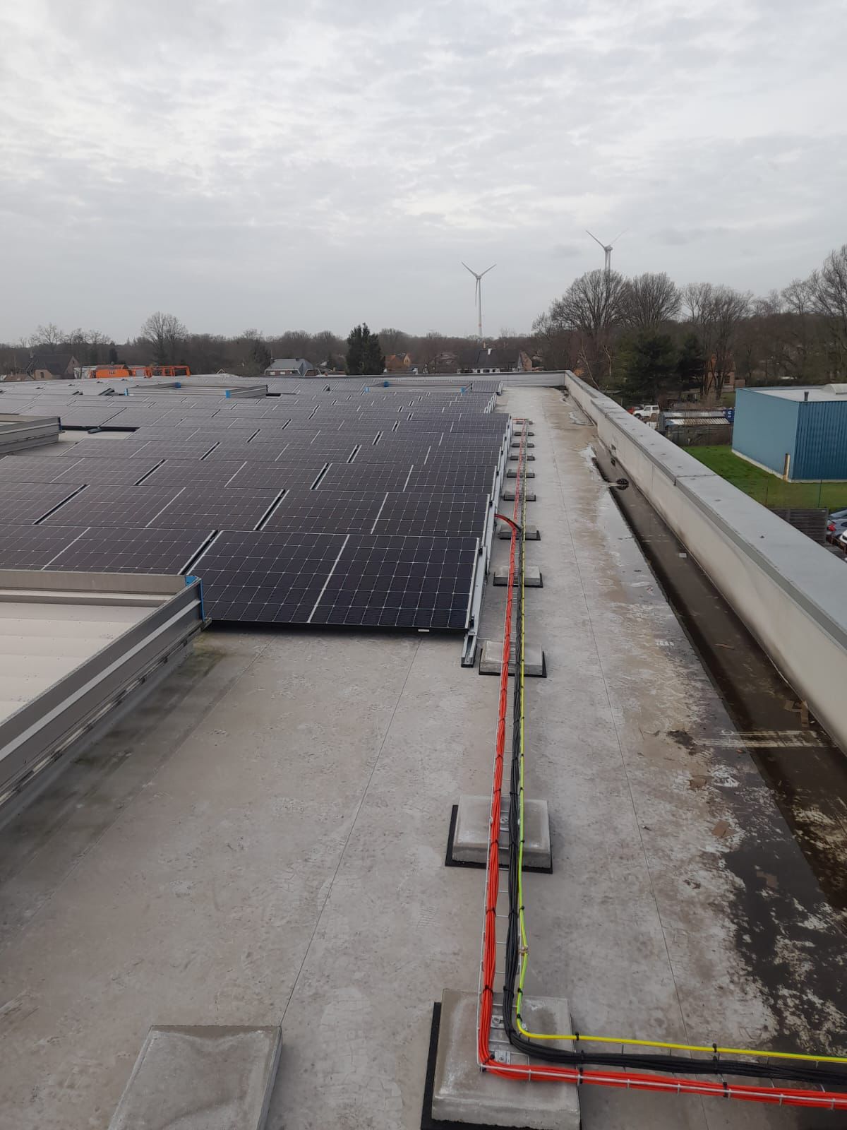 - Totaalinstallatie: 443 kWp + 345 kVA (omvormers) + 577 kVa (BESS)