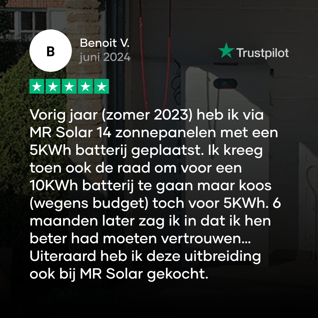 Bij MR Solar kiezen we voor kwaliteit. Naast de standaard fabrieksgarantie bieden we 10 jaar lang Full Omnium Service-Garantie op de volledige installatie, alle onderdelen, alle uurlonen en verplaatsingskosten.