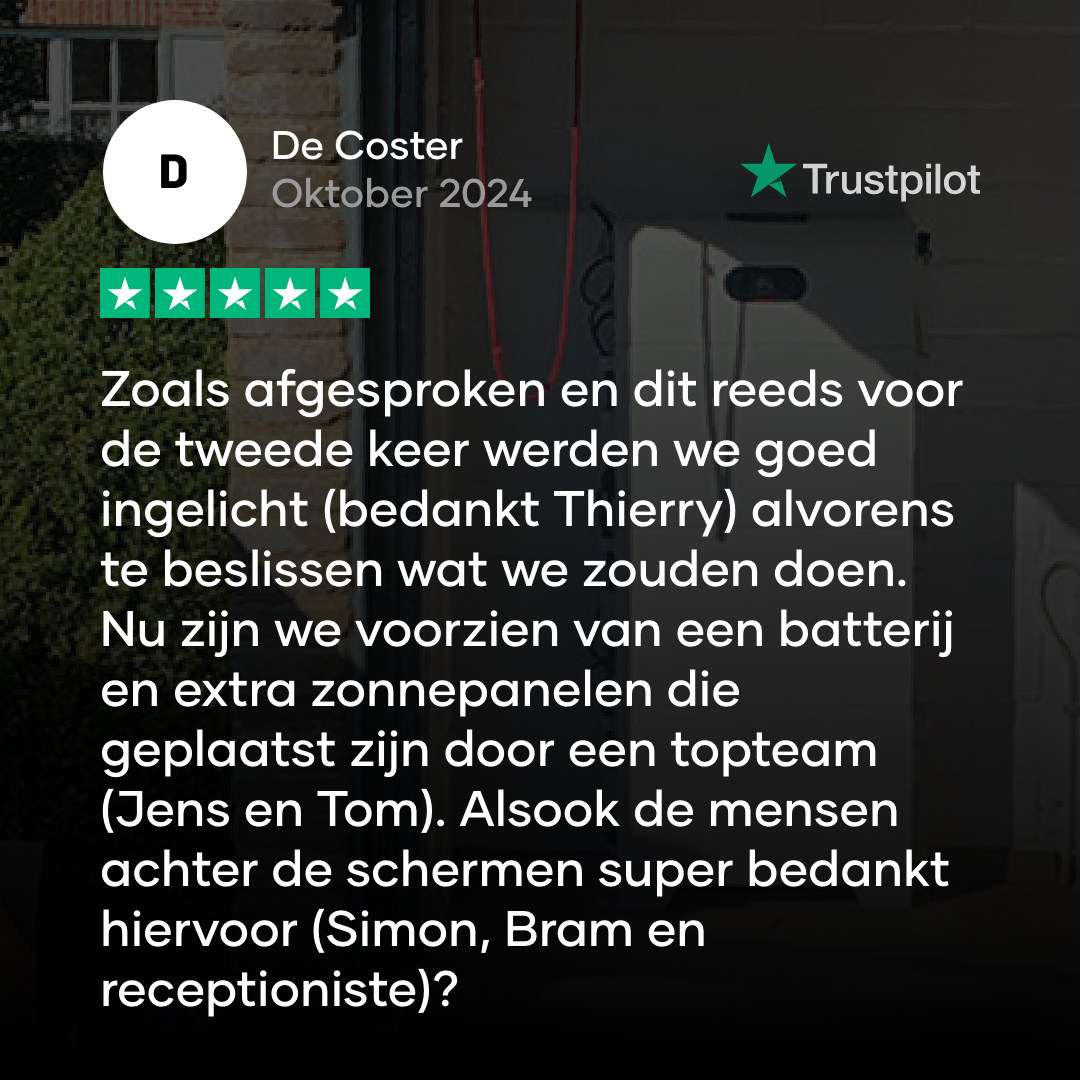 Na installatie begint onze service op de lange termijn. Naast uitleg over de werking van de installatie kan je rekenen op een persoonlijke login voor online monitoring. Bij vragen of problemen staat onze in-house technische dienst voor je klaar.